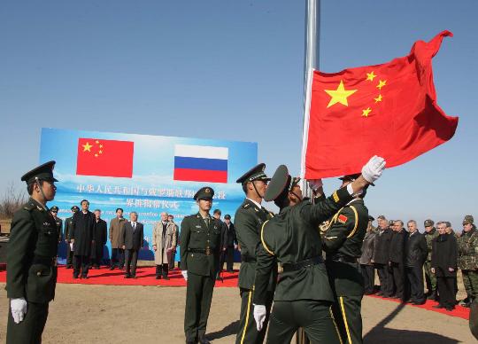 10月14日,中俄界樁揭幕儀式上升起中華人民共和國(guó)國(guó)旗 資料圖片
