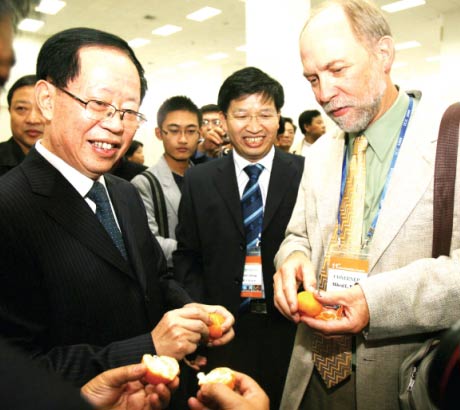 國(guó)際柑橘大會(huì)首次在漢召開(kāi),農(nóng)業(yè)部副部長(zhǎng)現(xiàn)場(chǎng)推薦湖北柑橘,省農(nóng)業(yè)廳果品辦主任李傳友透露“不必驚慌,很多國(guó)家的不同地區(qū)都發(fā)生過(guò)蛆柑事件。”昨日下午,由國(guó)際柑橘學(xué)會(huì)主辦,中國(guó)柑橘學(xué)會(huì)和華中農(nóng)業(yè)大學(xué)承辦的第十一屆國(guó)際柑橘大會(huì)開(kāi)幕,600余名來(lái)自世界各國(guó)的柑橘專家參加了會(huì)議。
