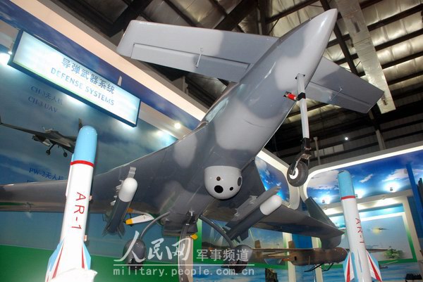 在航天科工的展臺上,首次展出CH-3長航時無人機,據現場有關人士介紹,該款已經研發成功并投入使用的無人機,是軍方公布的最先進的一款無人偵察機。“該機的監控范圍可以達到方圓400公里!”