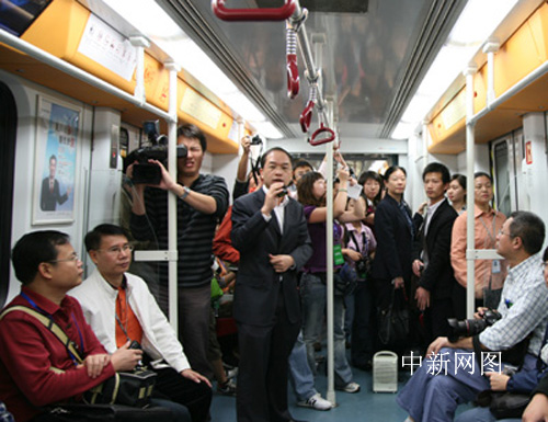 中新網廣州11月10日電 10日上午,參加全國重點網絡媒體廣東行的記者一行數十人,參觀并乘坐了廣州地鐵三號線。據介紹,廣州計劃在2010年亞運會開幕之前建成230公里地鐵。