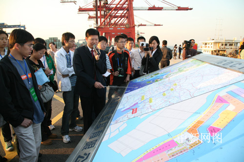 11月11日,廣州港南沙港區負責人向網絡媒體記者介紹南沙港區情況