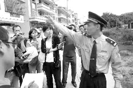 大約3個小時后,在斗門區白蕉派出所,珠海市警方舉行了媒體見面會。見面會上,11月5日開槍擊斃泥頭車司機駱某的警察余新化終于亮相,并前往開槍現場向記者講述了開槍過程。