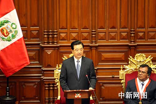 中國國家主席胡錦濤二十日在秘魯國會發表重要演講。中新社記者 齊彬攝