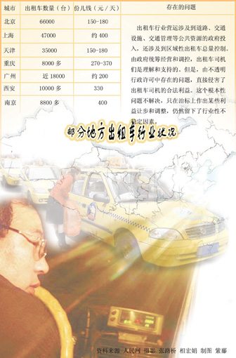 據(jù)記者了解,目前各地政府對出租車的投放模式有兩類:一是政府通過行政審批的方式控制出租車的總量;一是政府一次性拍賣出租車經(jīng)營權(quán)。第一種模式導(dǎo)致了出租車公司的中間盤剝,也就是出租車司機(jī)說的“份兒錢”;第二種模式產(chǎn)生的問題是,政府一次性拍賣了出租車經(jīng)營權(quán),斬?cái)嘀虚g盤剝鏈條,取消“份兒錢”,但是導(dǎo)致“出租車經(jīng)營權(quán)”的猖獗倒賣,比如,一些地方就出現(xiàn)了原來10萬元從政府處買來,卻60萬賣給其他人經(jīng)營的事情。