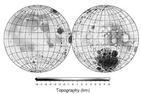 日前,由嫦娥一號衛星測控系統VLBI分系統總體技術主任設計師、中國科學院上海天文臺研究員平勁松、黃倩,北京航天飛行控制中心唐歌實、曹建峰等人完成了全月球地形圖測繪,并在2008年第11期《中國科學G輯》上發表題為《基于嫦娥一號衛星激光測高觀測的月球地形模型CLTM-s01》的論文,介紹利用嫦娥一號月球探測衛星激光高度計數據得到的月球地形模型。