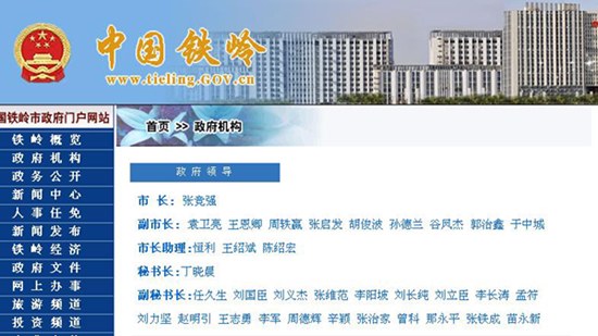 26日鐵嶺市政府政府領導名單(網站截圖)