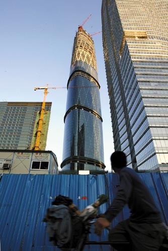 西塔創(chuàng)造了“兩天一層”的新速度 本報(bào)記者 林桂炎 攝