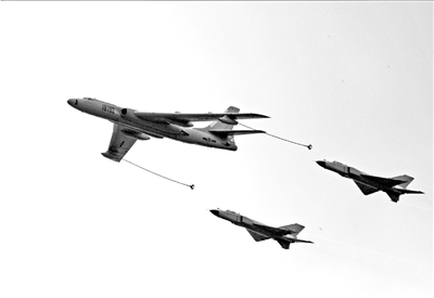 兩架戰機進行空中加油。圖片除署名外均為譚超攝