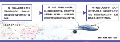 第三利益人自然就是旅行社。據(jù)了解,近幾年來專門從事公務(wù)出國的旅行社發(fā)展迅速,目前全國已有上百家,集中在廣州、上海、北京、南京、寧波等地。它們靠為公務(wù)團(tuán)安排行程賺錢!艾F(xiàn)在各級各地組織的出境、出國考察活動,絕大部分是通過旅游公司出去、并由境外旅游機(jī)構(gòu)接團(tuán)安排行程的,其實就是公款旅游。”新余市委一位干部對記者說。