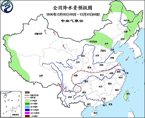 2008年12月9日8時—12月10日8時全國降水量預報圖