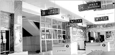 乘坐83路公交車到機場不到半小時。直通候機樓的一條柏油路很直,但顯得異常的冷清,幾乎看不到車輛和行人通過。機場大門口西側一名保安閑坐著,東側有兩位老人蹲坐在那里聊天。走進洛陽飛機場大院,候機樓就在眼前,樓前的廣場雖然不大,但由于停放的只有稀稀落落的幾輛車,顯得有些空曠。停放的車輛中有三輛是出租車。候機廳內也是空空的,看不到一個人影。
