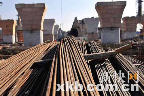 現場可以見到一些水泥墩上還有鋼制的圓柱,據了解,這些超過二十噸重的雨棚鋼柱就是新廣州站的柱子。