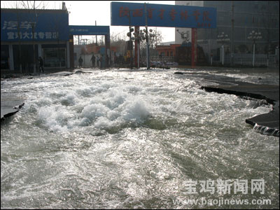 12月16日中午12點(diǎn)40分左右,位于陳倉(cāng)大道底店段引水、輸水管道再次發(fā)生爆管。這是近一月來發(fā)生的第三次爆管,我市渭河以北地區(qū)的居民暫停用水。
