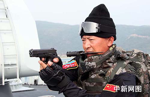 中新網“海口”艦12月28日電(記者 孫自法)特戰隊員出征前在“?凇碧枌楎屩鹋炆线M行輕武器演練。
