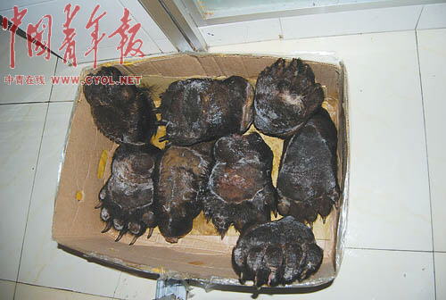 熊掌來路廣泛。由于當地收購已完全不能滿足需求,因此,每年都有大量熊掌從俄羅斯走私到這里。不久以前,曾有當地商人一次從外面進了6000斤熊掌。這些貨物“從來不愁銷路”。