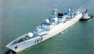 擔負赴亞丁灣、索馬里海域護航任務的指揮艦“武漢”號導彈驅逐艦,是我國自行設計建造的新型現代化導彈驅逐艦,舷號169,該艦長155.5米,寬17.2米,滿載排水量5000多噸。