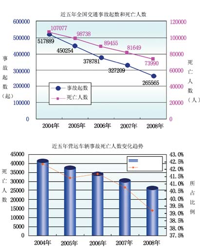 就在今天,公安部網站發表文章稱,2008年“全國道路交通安全形勢總體平穩”。文章列舉了一系列數據:2008年,全國共發生道路交通事故265204起,造成73484人死亡、304919人受傷,直接財產損失10.1億元。與2007年相比,以上各項都有所減少。