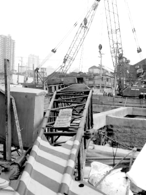 事故發生在9號線二期工程的4標段,建設單位為上海市機械施工有限公司和上海市第五建筑有限公司。倒塌的吊臂有二三十米長,車輛側翻在挖得很深的軌交隧道旁,幸未墜入隧道。事發時,吊臂和吊車向南傾斜倒下,吊臂伸出工地,伴隨著“轟隆”一聲巨響,砸在圍欄外車流和行人熙熙攘攘的中華路上,所幸路人躲避及時,未被砸傷。