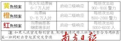 當火車站旅客達到7萬時,即啟動初級預案,調集600多警力趕赴現場疏導,同時開放流花展館作為分流旅客的安置點。當旅客超過14萬人時,越秀警方將啟動一級應急預案,征用廣東國際貿易大廈、錦漢大廈、流花中學、友誼劇院等場所作為安置點。(記者/洪奕宜通訊員/龔文武田繼剛)