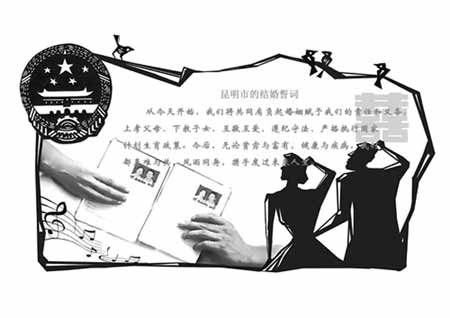 這種被稱為“結(jié)婚宣誓制度”的新登記方式,一改傳統(tǒng)單一的婚姻登記發(fā)證模式,在原有婚姻登記的基礎(chǔ)上增加了結(jié)婚宣誓和頒證儀式兩項內(nèi)容。