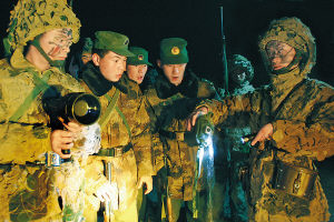 不知不覺,50分鐘過去了。偵察分隊隊長常增榮眼睛依然緊盯著夜視儀顯示屏,心里直撲騰:再過10分鐘,還發現不了目標,這場較量就要以偵察分隊的失敗告終……