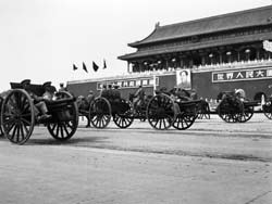 曾參與新中國多次國慶閱兵的北京軍區原炮兵司令部處長張軍告訴記者,開國大典受閱炮兵部隊裝備,全是從日本侵略軍和國民黨軍隊手里繳獲的戰利品,其中參加閱兵的90野炮和38野炮,不僅身管短,兩個輪子有的還是木輪子包鐵皮的。盡管當時我軍武器裝備還很落后,但場面恢宏、壯觀,大氣磅礴,全體受閱將士以昂揚精神狀態、威武雄壯陣容出現在國人面前,并向世界發出了宣言:中國人民解放軍有信心、有能力保衛新生的人民政權!正因為如此,開國大閱兵具有極為重要的歷史意義。