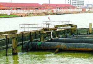 城西水廠在蟒蛇河里的取水口,靠近主航道