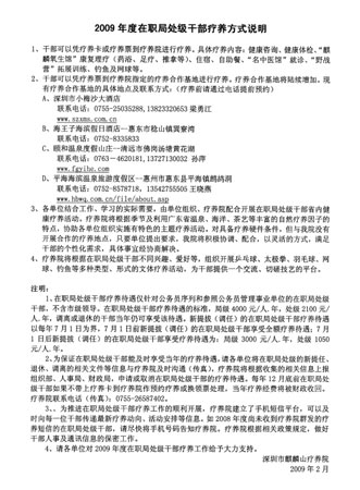前天下午,本報記者接到讀者報料稱,深圳市建設局網站貼出一份公告,題為《2009年度在職局處級干部療養方式說明》,是由深圳市麒麟山療養院發給全市各職能局的。公告顯示,深圳市目前在職局級干部和處級干部可以享受包括足療、按摩在內的療養待遇,局級干部標準是4000元/人·年,處級干部是2100元/人·年。療養費用全部由政府財政支出。