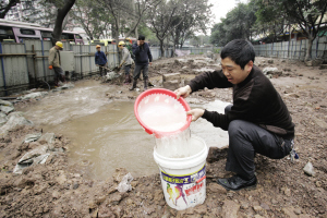 “快點接水,要停水了!”周圍居民聞訊馬上回家,趁著余水未流完之際,拿起桶桶、盆盆全部接滿,以備急需。爆管最開始為工地一工人發現,立即通知自來水公司搶修。