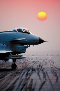 沐浴在金色陽光下的殲-10戰機。