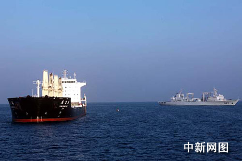 得知此事后,中國海軍護航編隊立即派距離事發(fā)海域200多海里外的“海口”艦高速前往接護。2月26日清晨,“雁蕩海”號在“海口”艦的護送下,順利抵達亞丁灣東部安全海域。分航前,護航編隊還派出醫(yī)務人員登上“雁蕩海”號,為受傷船員進行了身體檢查和包扎處理。