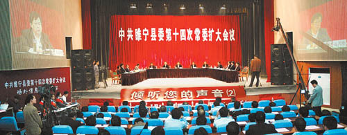 對(duì)睢寧的許多干部來說,2008年8月16日“傾聽您的聲音”還不是最大的考驗(yàn)。同年10月11日,睢寧縣委第十四次常委(擴(kuò)大)會(huì)議,是一次讓許多干部“從未這么緊張過”的會(huì)議。參加這次會(huì)議的,除了縣領(lǐng)導(dǎo)班子外,還有各機(jī)關(guān)單位和群眾代表。