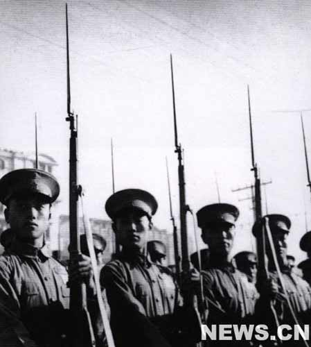 中國人民如今已擁有現代化的國防武裝,這是中國人民力量劃時代的發展。全場群眾為保衛祖國和世界和平的力量的增長而一再歡呼。