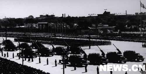 首都今天舉行盛大閱兵和有六十萬人參加的慶祝大會和大游行,慶祝中華人民共和國成立九周年。