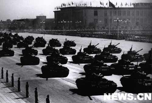 炮兵勇士驅(qū)車(chē)牽引著一百四十四門(mén)各種口徑的遠(yuǎn)射程大炮前進(jìn),這些大炮,絕大部分是我國(guó)自己制造的,其中有威力強(qiáng)大的自動(dòng)化的高射炮。拖著大炮的"五九"式履帶牽引車(chē)和九十九輛巨型坦克,它們組成的鋼鐵巨流,發(fā)著隆隆的巨響,來(lái)到天安門(mén)前。受檢閱的炮兵部隊(duì)中,有一支是人民解放軍重炮兵部隊(duì)中建軍最早的部隊(duì),它在遼沈戰(zhàn)役中大顯神威,在解放海南島的戰(zhàn)役中痛擊敵艦。現(xiàn)在,他們擁有新式國(guó)產(chǎn)的大口徑加農(nóng)大炮,成為無(wú)堅(jiān)不摧的現(xiàn)代化炮兵。參加受檢閱的我國(guó)制造的新型坦克,性能優(yōu)良,有各種最新式的技術(shù)裝備和強(qiáng)大的火力。
