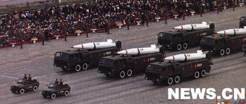 輝煌50年,在黨的三代領導集體的精心運籌下,從原子彈、氫彈試驗成功到水下發射導彈、新型遠程地地導彈發射,從百億次銀河計算機的問世到長征系列運載火箭的57次發射衛星成功,我國國防尖端科技成就舉世矚目。