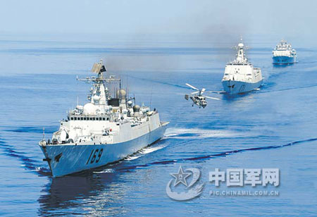 2008年12月26日,由南海艦隊3艘現代化戰艦組成的中國海軍首批赴亞丁灣、索馬里海域護航編隊,滿載著13億中國人民的深情關注,犁開了人民海軍遠洋護航的新航跡,開啟了中國海軍走向深藍的新征程,奏響了構建“和諧海洋”的新樂章。