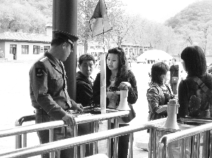 5月1日10時許,一名叫常波的男子在天安門廣場西側招攬“一日游”游客。