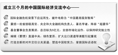 中國國際經濟交流中心(以下簡稱“國經中心”)正是在此背景下應運而生,目標就是辦成民間智庫,融匯高層、權威資源,進行前瞻性、戰略性、全局性研究,為公共政策提供智力支撐,為企業跨國經營提供咨詢服務。