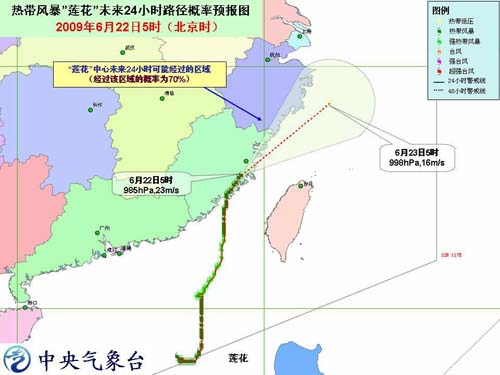 中新網(wǎng)6月22日電 中央氣象臺(tái)今天早晨六時(shí)發(fā)布臺(tái)風(fēng)消息:今年第3號(hào)熱帶風(fēng)暴“蓮花”(LINFA)已于昨天晚上8時(shí)30分前后在福建晉江東石鎮(zhèn)登陸,登陸時(shí)中心附近最大風(fēng)力有9級(jí)(23米/秒)。“蓮花”登陸后向北偏東方向移動(dòng)。今天早上5時(shí)風(fēng)暴中心位于福建省莆田市境內(nèi),就是北緯25.5度,東經(jīng)119.1度,中心附近最大風(fēng)力有9級(jí)(23米/秒)。