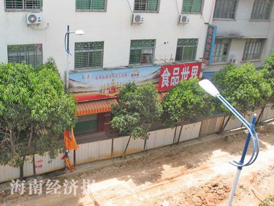 近日,海南經濟報記者來到保亭縣文明中路符惠卿原經營的食品世界超市,上面的招牌還沒有拆除,里面隔成2間鋪面,分別經營茶店及蛋糕店。