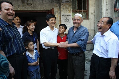 烏魯木齊市天山區(qū)團(tuán)結(jié)西社區(qū)是一個(gè)維吾爾、哈薩克、蒙古和漢族等多民族和睦相處的社區(qū)。孟建柱先后來到鄒德敬和巴合提亞爾等居民家中走訪看望,并與在樓前樹陰下乘涼的社區(qū)居民談心,了解他們的生活狀況,傾聽他們的心聲,面對(duì)面地講道理、做工作。社區(qū)群眾真情訴說在美麗富饒的新疆各族人民和睦相處、共同發(fā)展的樁樁事例,紛紛聲討民族分裂分子的無恥行徑,強(qiáng)烈要求嚴(yán)懲兇手,維護(hù)幸福安康的生活。