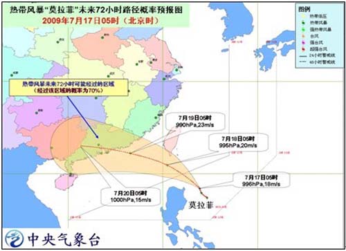 中新網7月17日電 據中國氣象局網站消息,7月16日晚,菲律賓呂宋島以東洋面的熱帶低壓加強為今年第6號熱帶風暴“莫拉菲”(MOLAVE)。