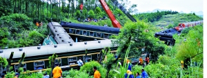 經初步調查認定,列車脫軌原因是由于連日持續強降雨造成山體崩塌掩埋鐵軌所致。