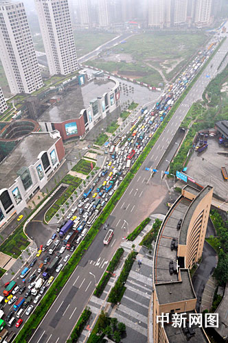 此外,由于暴雨天氣的出現,重慶主城內環、成渝、渝武,渝遂等四條高速公路已經實行全程封閉,其中百余輛車因成渝高速二郎收費站封閉造成堵塞。主城公交車多因積水熄火或無法前行,主城多出交通大動脈堵塞數小時。