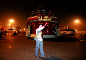 昨天21時,朝陽體育中心,運(yùn)載彩車司機(jī)的客車和近200輛輔助車出發(fā),開往天安門廣場。