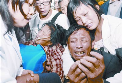 哭聲壓過了哀樂聲。陳及時的父親陳崇香、母親涂月熙,狠命的要擠向躺在花叢中的兒子,嚎啕大哭,“兒啊,你怎么走了,你怎么丟下我們走了啊!”此前,由于悲傷過度,涂月熙在賓館里每天輸液。現場,參加吊唁的人,也忍不住直抹淚,一些人甚至也放聲痛哭。
