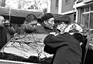 昨日下午,他緩步來到靈堂,難抑悲痛心情,不時掏手絹擦眼淚。耿老說,他就居住在與錢老家相鄰的單元內。