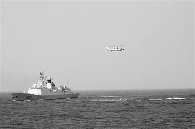 “白鷺洲”號油輪船員一面用消防水龍頭向接近的“海盜快艇”噴射高壓水流,一面向我海軍護航編隊求救。“舟山”艦如一條白色蛟龍,疾速向“海盜快艇”聚集海域駛來。我護航編隊直升機上特戰隊員接連對“海盜快艇”進行攔阻射擊,并由“舟山”艦派出2艘艦載小艇對“海盜快艇”進行登臨檢查。“藍天戰鷹”和“銀色蛟龍”聯手驅散了船員心中的陰霾。