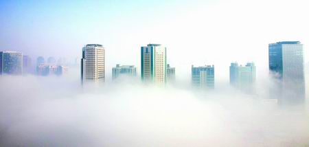 前兩日,鄭州遭遇有氣象記錄以來(lái)最大的暴雪襲擊。昨天早上,暴雪后鄭州市區(qū)出現(xiàn)霧海奇觀,市區(qū)建筑在霧中若隱若現(xiàn)猶如“海市蜃樓”,讓人嘆為觀止。“快看,東區(qū)的大樓好像在云朵之上似的!”昨日一大早,很多市民打來(lái)熱線反映此事。